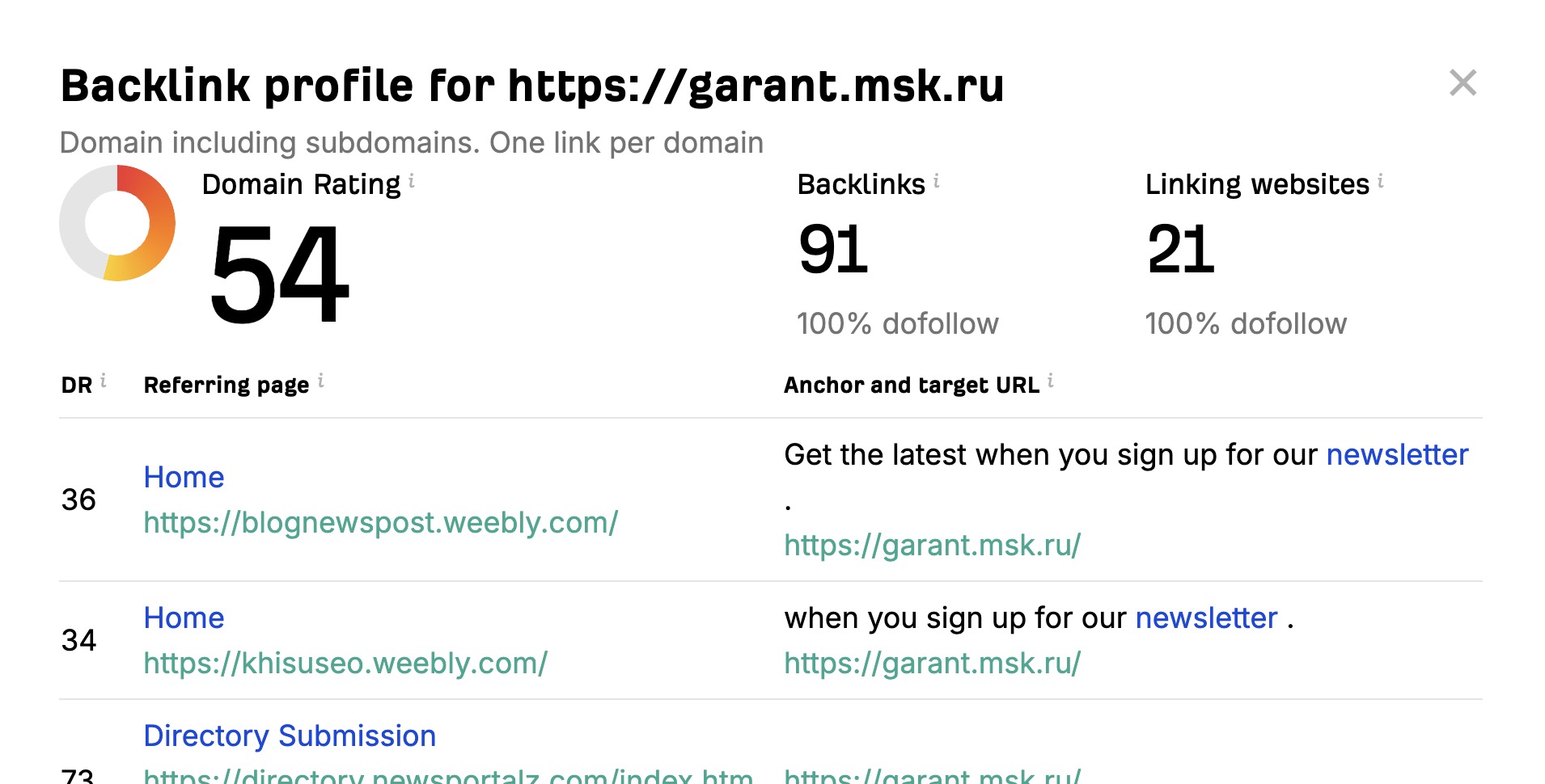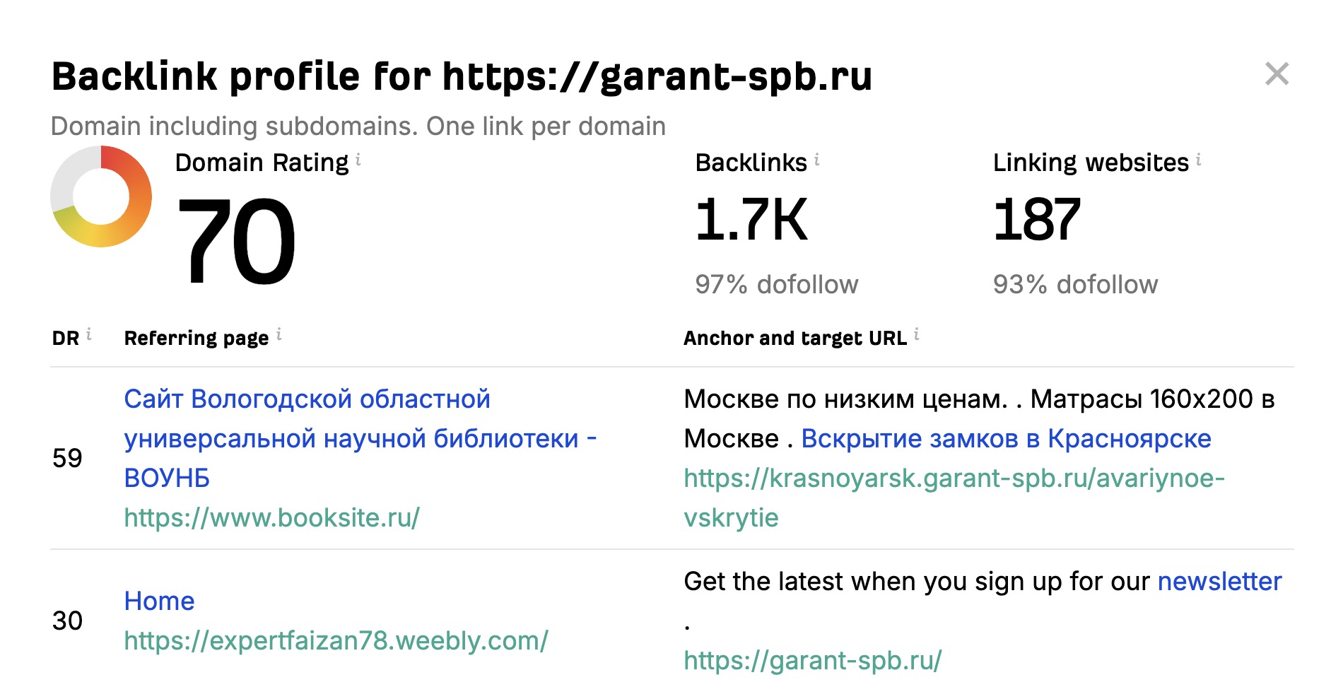 Рейтинг домена до простановки ссылок