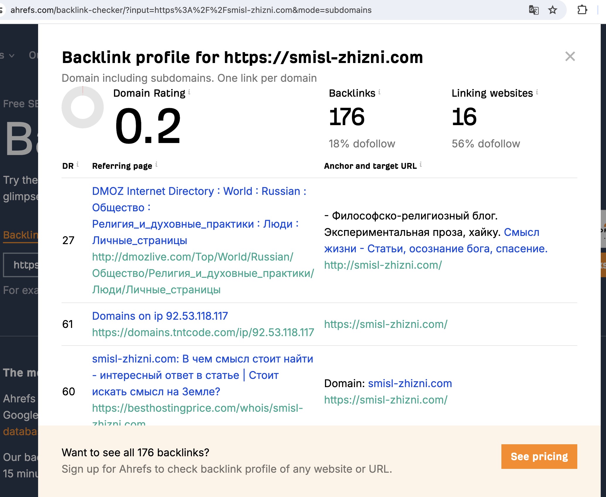 Ссылки для проверки https://ahrefs.com/backlink-checker/?input=https%3A%2F%2Fsmisl-zhizni.com&mode=subdomains